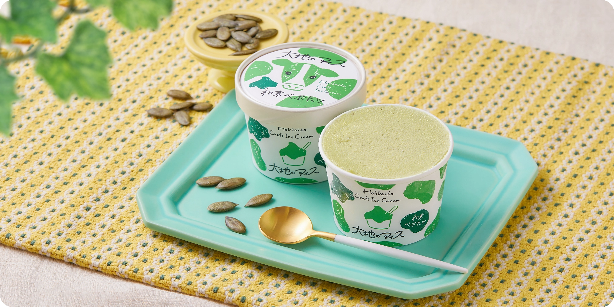 かぼちゃの収穫量が日本一のまち・和寒町のペポナッツを使ったアイスクリームです。