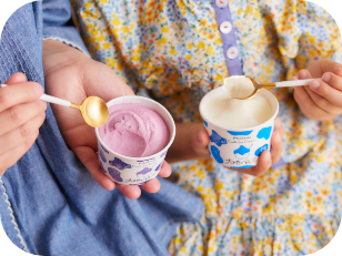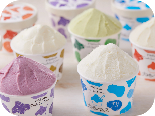 スプーンがスッと入ったら食べごろです。出来立てのアイスはソフトでクリーミー。冷凍庫から出してすぐはとても固く、本来のおいしさとは異なります。おいしいタイミングまで「モウ少しだけ」お待ちください。